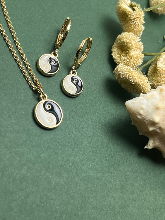 این نیمست شاهکاری از طراحی مینیمال است که عمیقاً ریشه در فلسفه تعادل دارد. گردنبند و گوشوارهها با ترکیب هنرمندانهی دایرههای سیاه و سفید، مفهوم همزیستی تضادها را به تصویر میکشند؛ یادآوری بصری این حقیقت که در هر نور سایهای و در هر تاریکی نوری نهفته است.
